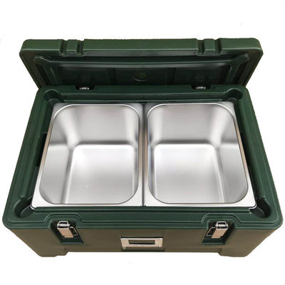 3. Aardig en koel gelieve te houden de externe omgeving van container om te zijn. Het isolerende polyurethaanmateriaal kan de temperatuur van het koude en hete voedsel zonder elektromateriaal houden wanneer zij worden overgebracht.
